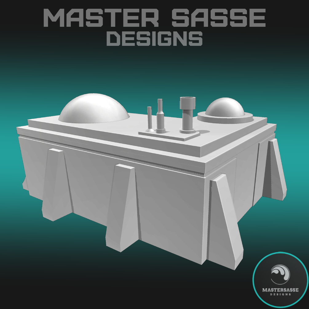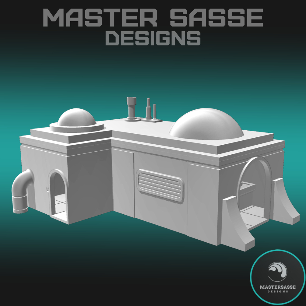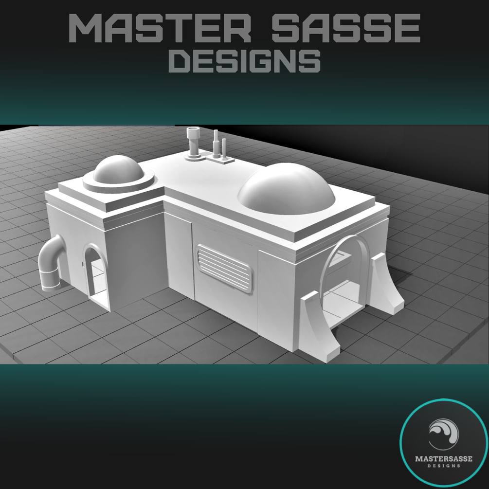 The Desert Tavern is a multipart set including a Sci-fi open building with a separate removable roof, a sci-fi stove, and an L-shaped countertop bar. The building and roof are pre sliced to into 4 parts to allow printing on smaller 3D printers. This model offers scaling to fit on 1 inch gridded battle mats and a larger scale for 1:48 tabletop games. Use this set in your tabletop battles as cover from your opponent or as a way to hide an objective forcing each player to put their strategic minds to the test. The Desert Tavern would look great in any wasteland diorama or as a background when taking photos of your best painted miniatures. RPG players or any story driven campaign could use these models to create a market for players to purchase items or collect bounties!